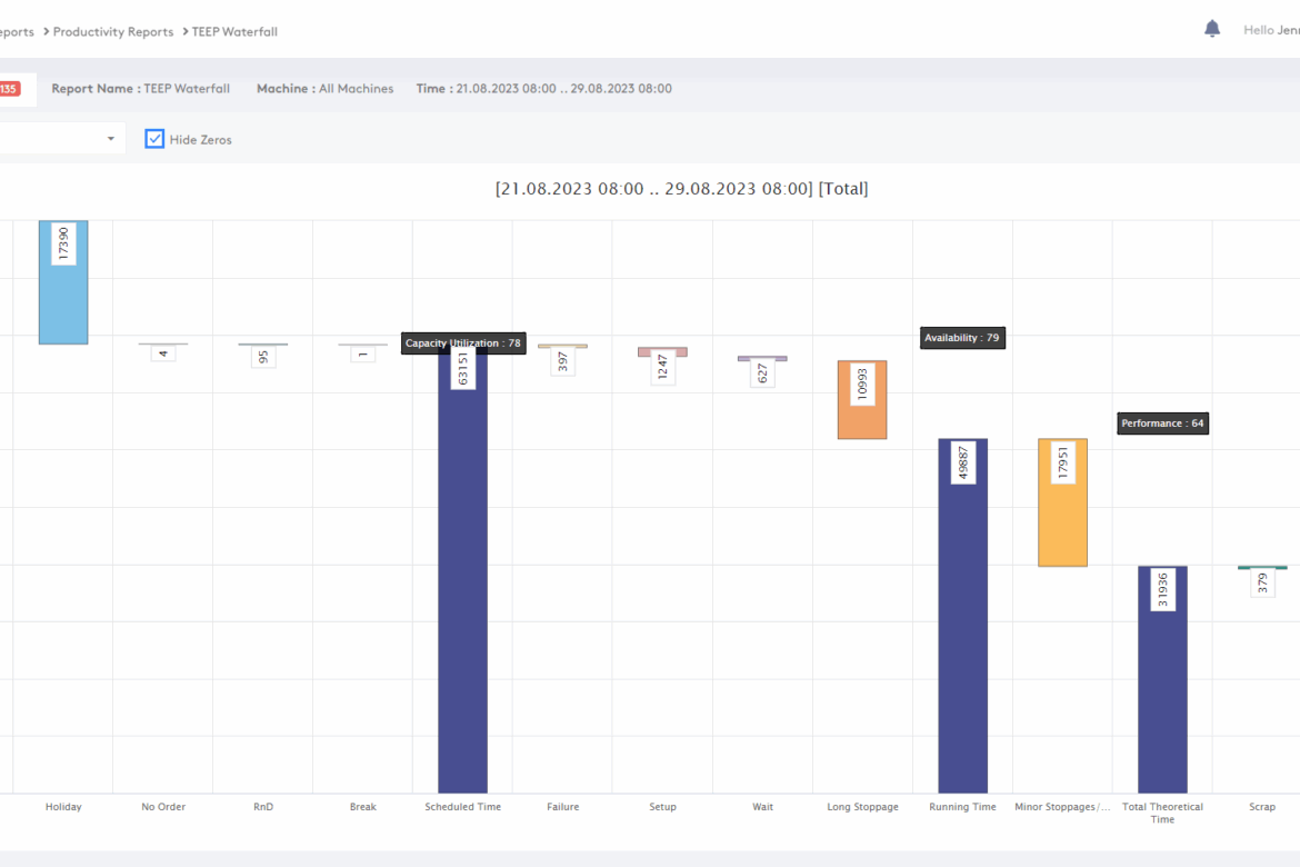 TEEP proves its worth as a strategic planning tool for business-level decisions about capacity utilisation. TEEP differs from OEE as it assesses potential production output against a 24/7 operating timeline and reveals untapped capacity in your “hidden factory”. Plant managers use TEEP to learn about critical resource allocation questions: “Should we introduce new shifts? Is it worth running through holidays? What would happen if we ran through weekends?”. It also helps decide if buying additional equipment makes sense or if existing assets could deliver more value. Most operations have substantial room for improvement, as prominent manufacturing plants typically achieve only 80-90% utilisation of total capacity.